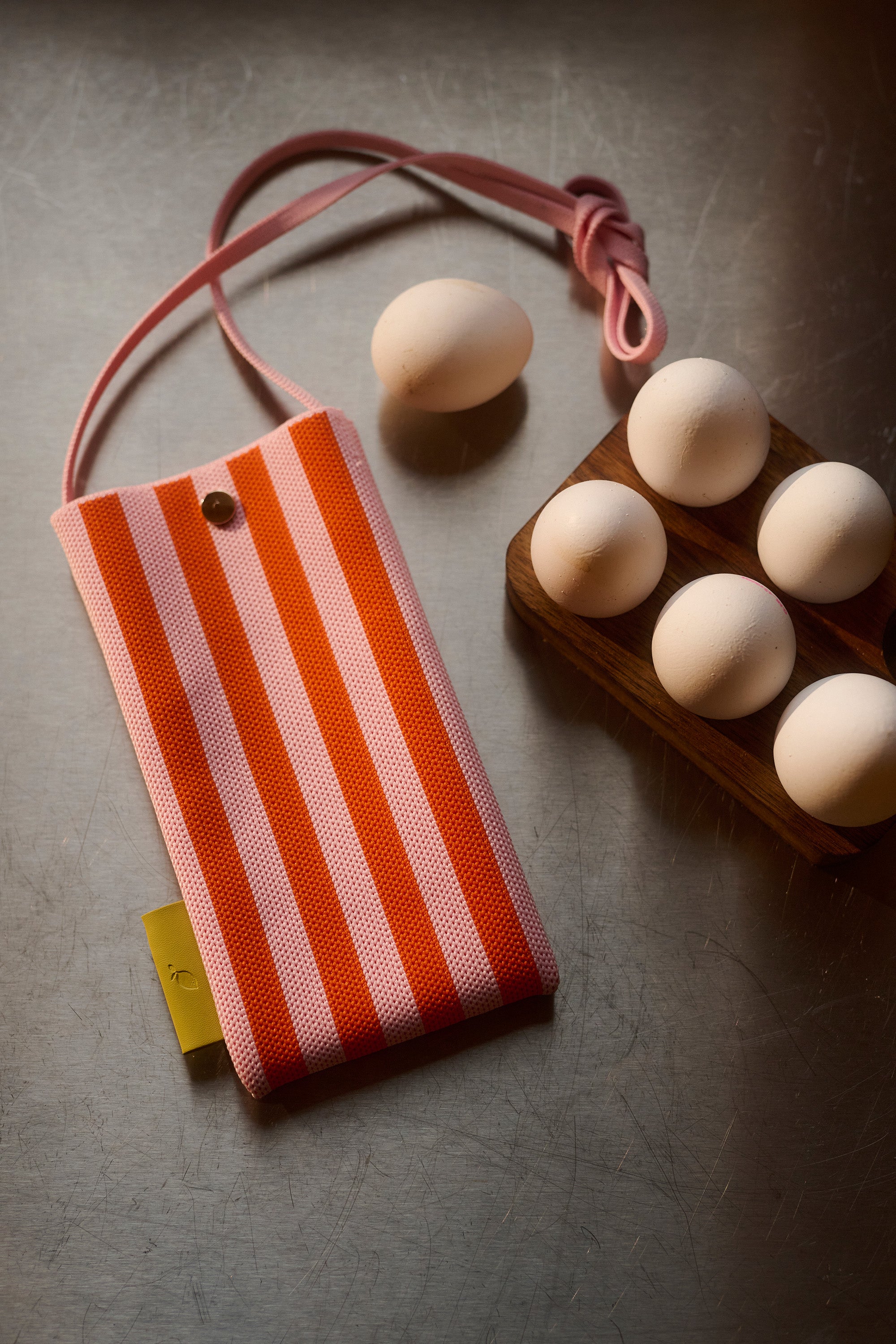 phone pouch | knitted stripes | dolce pink + arancia orange