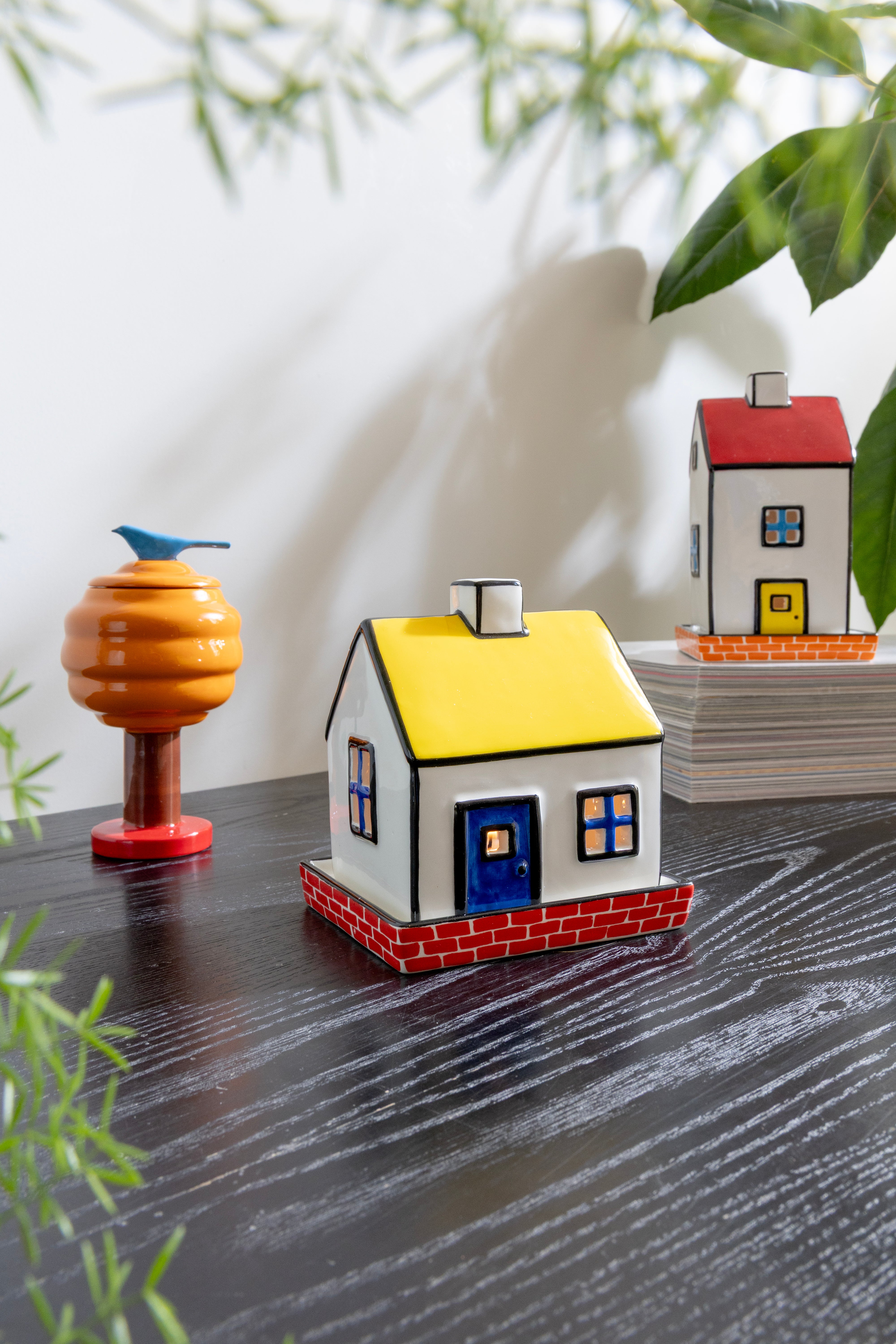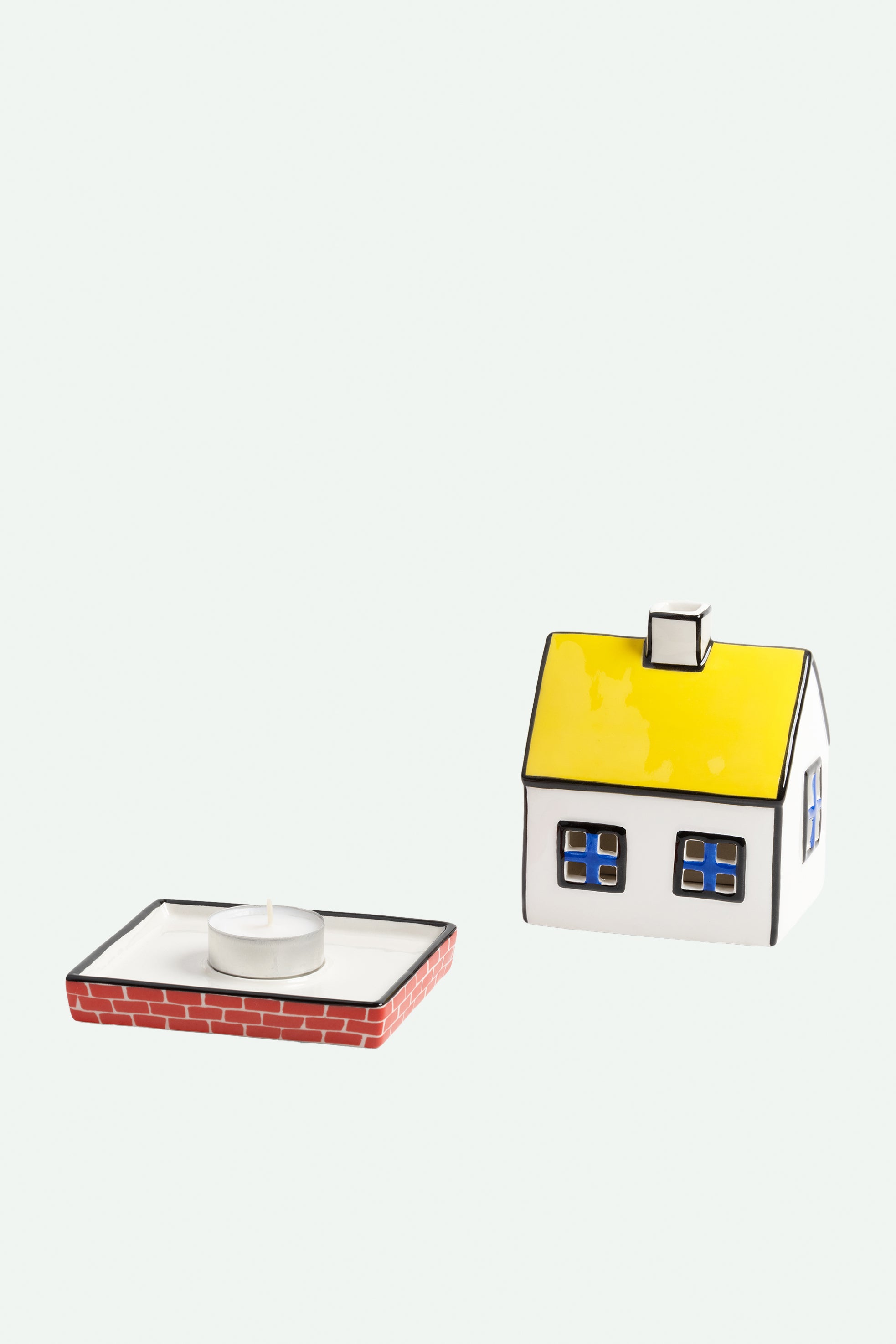 In collaboration with English ceramicist and illustrator Hal Haines, this set of hand-painted tealights brings narrative charm to your interior. Inspired by classic English table settings and Hal’s distinctive visual storytelling, each ceramic piece features bold details and a playful design. Combine multiple tealights and candle holders to build your own whimsical candlelit village. The tealight consists of two parts, a base and a decorative lid, creating a glowing moment when lit. Carefully packed in &klevering’s special edition box featuring Haines’ artwork. Each house is hand-painted and can therefore vary from house to house, which gives the house character. Note: Ceramic can become very hot. Always use on a heat-resistant surface, avoid touching or moving while in use, and lift the lid carefully from the sides. For added safety, we recommend using an LED tealight.